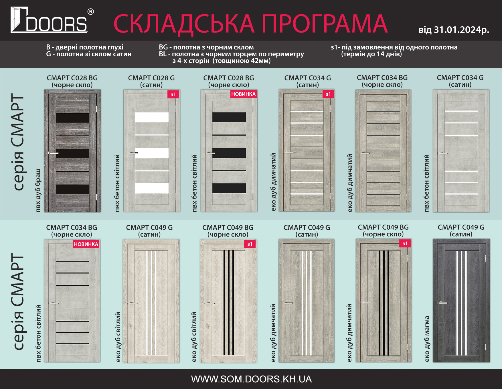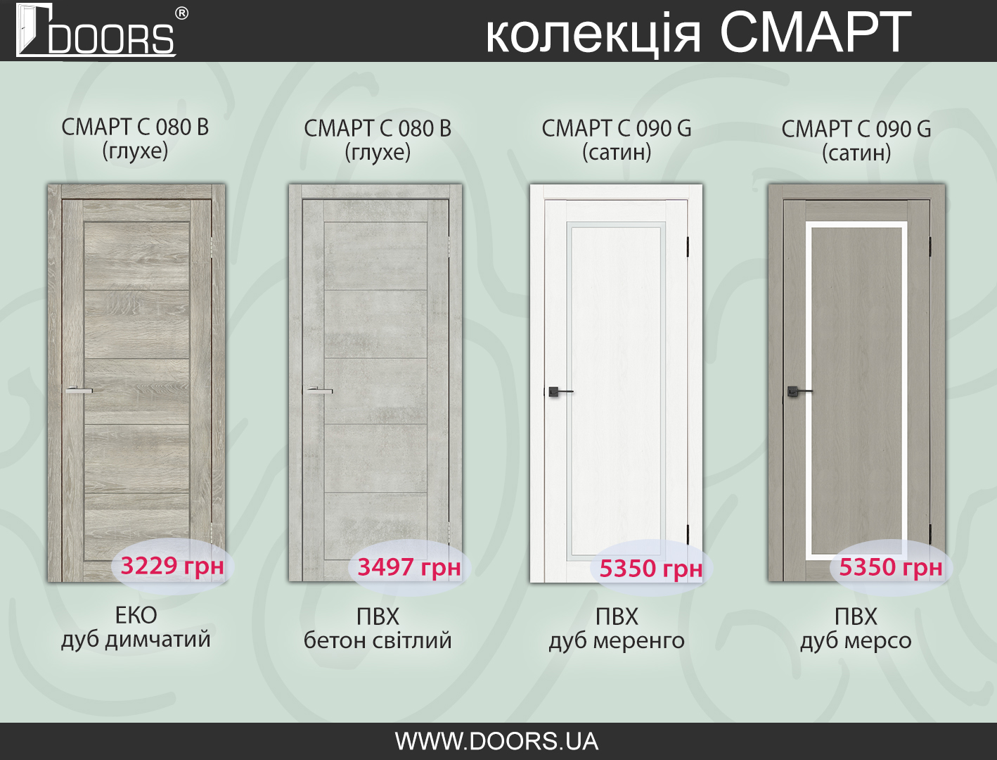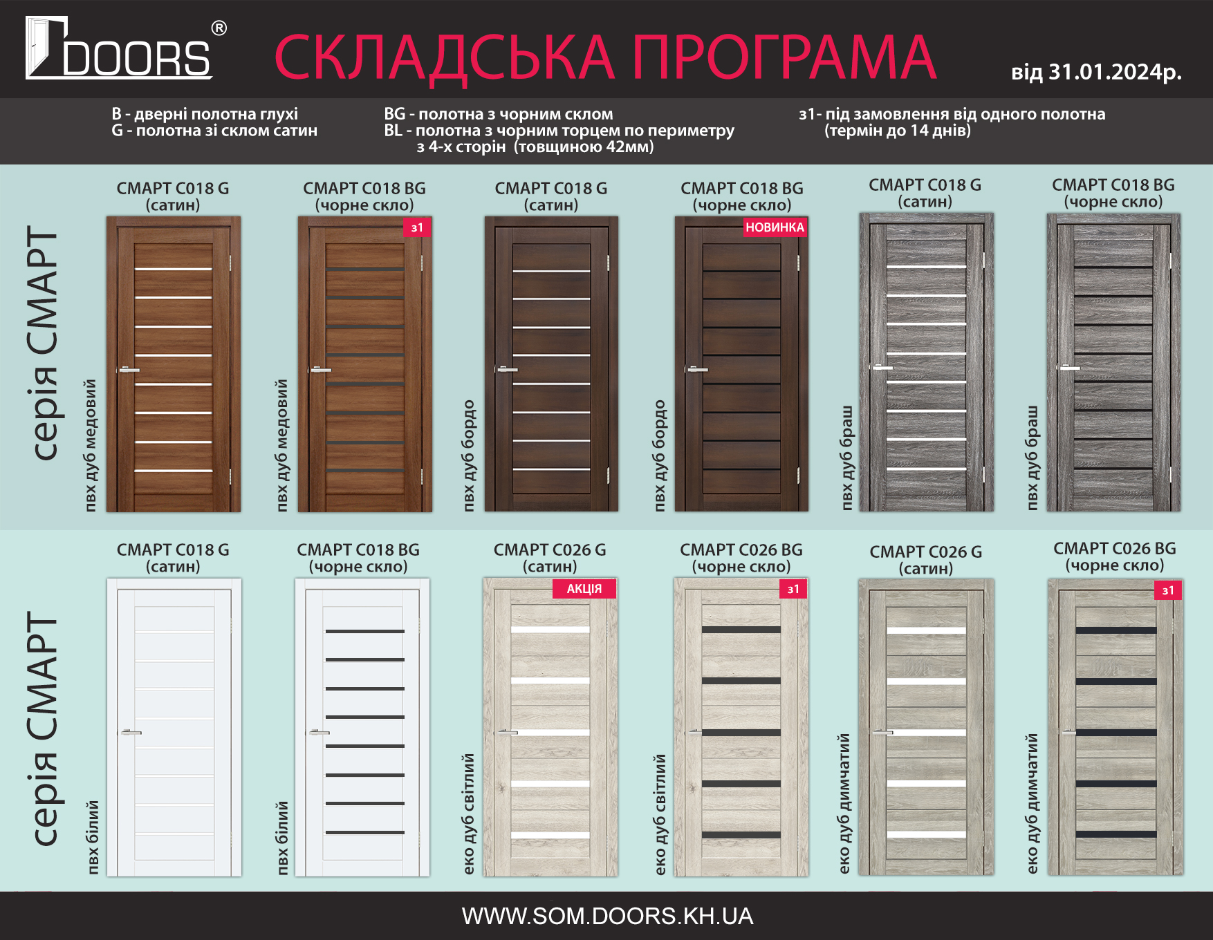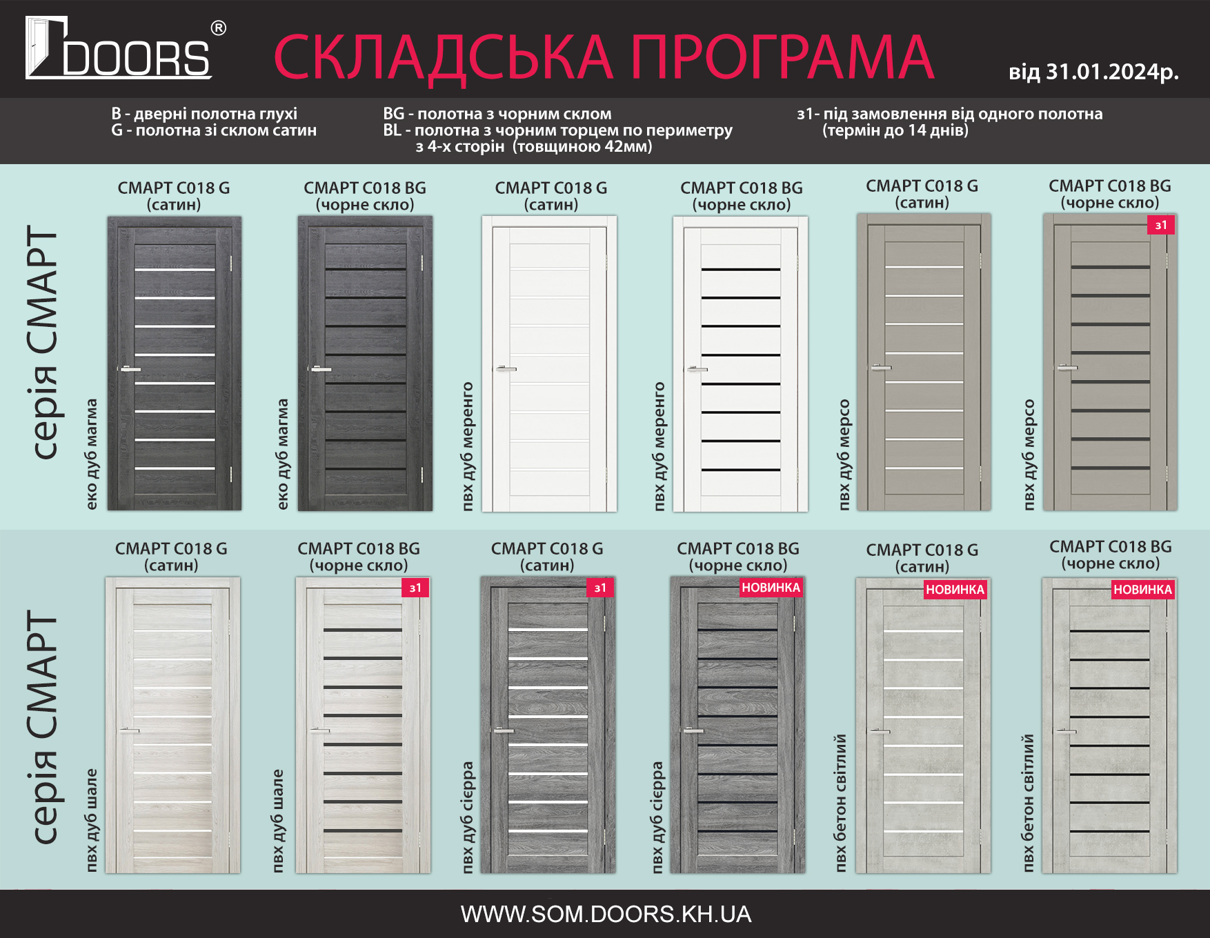 Моделі полотен колекції СМАРТ С070, С080, С090 та С101 в декорах складської програми 2024!