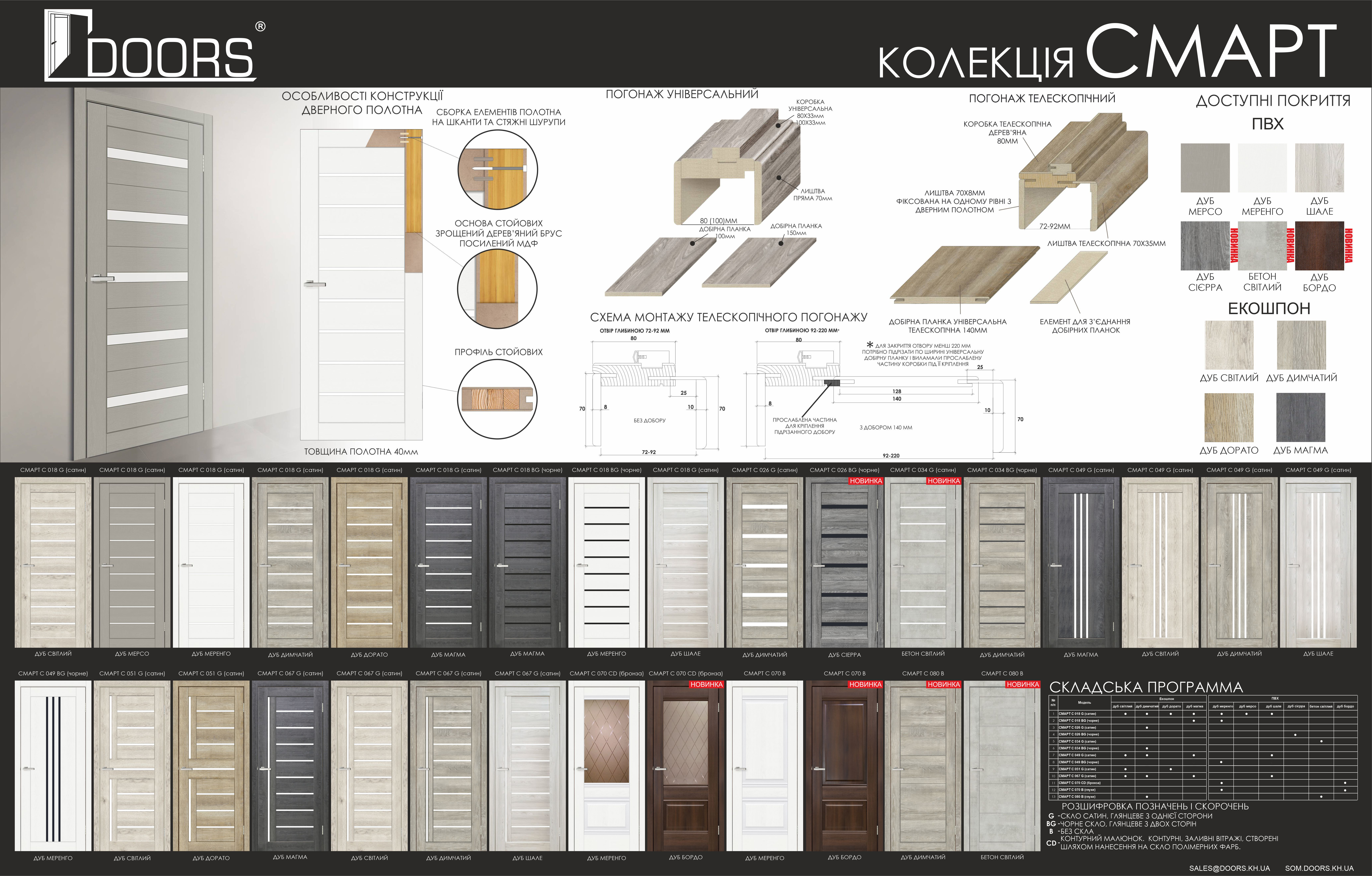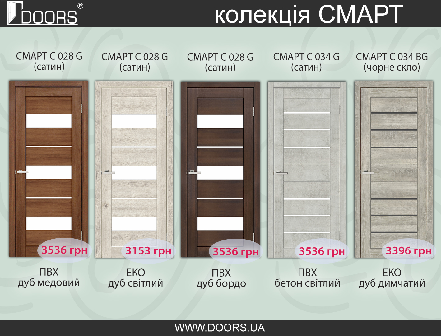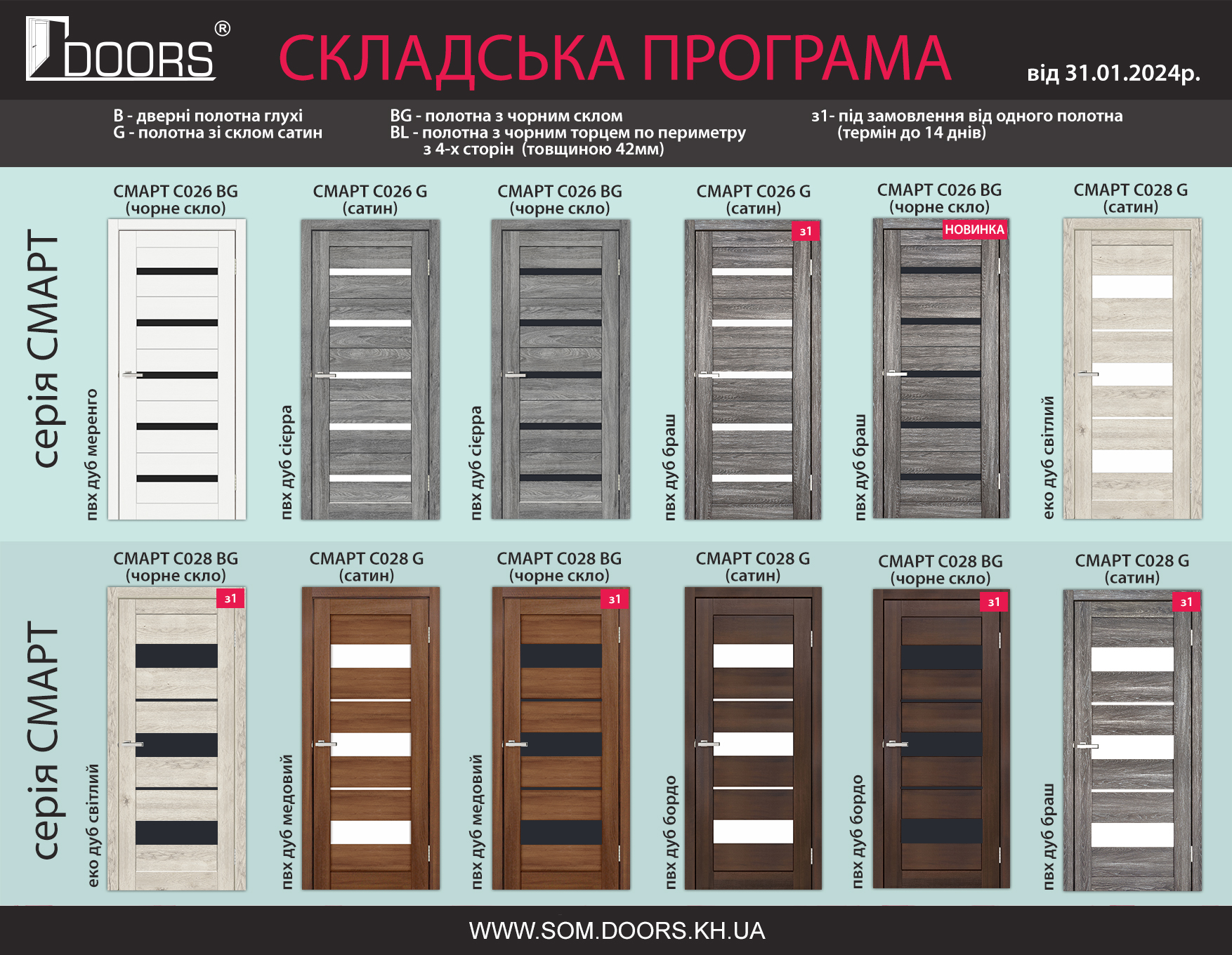Моделі полотен колекції СМАРТ С070, С080, С090 та С101 в декорах складської програми 2024!