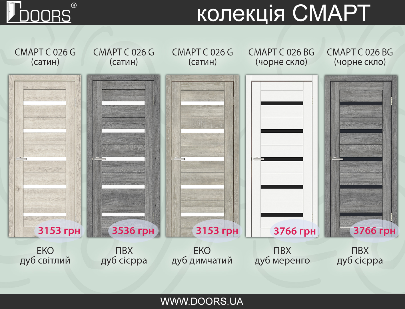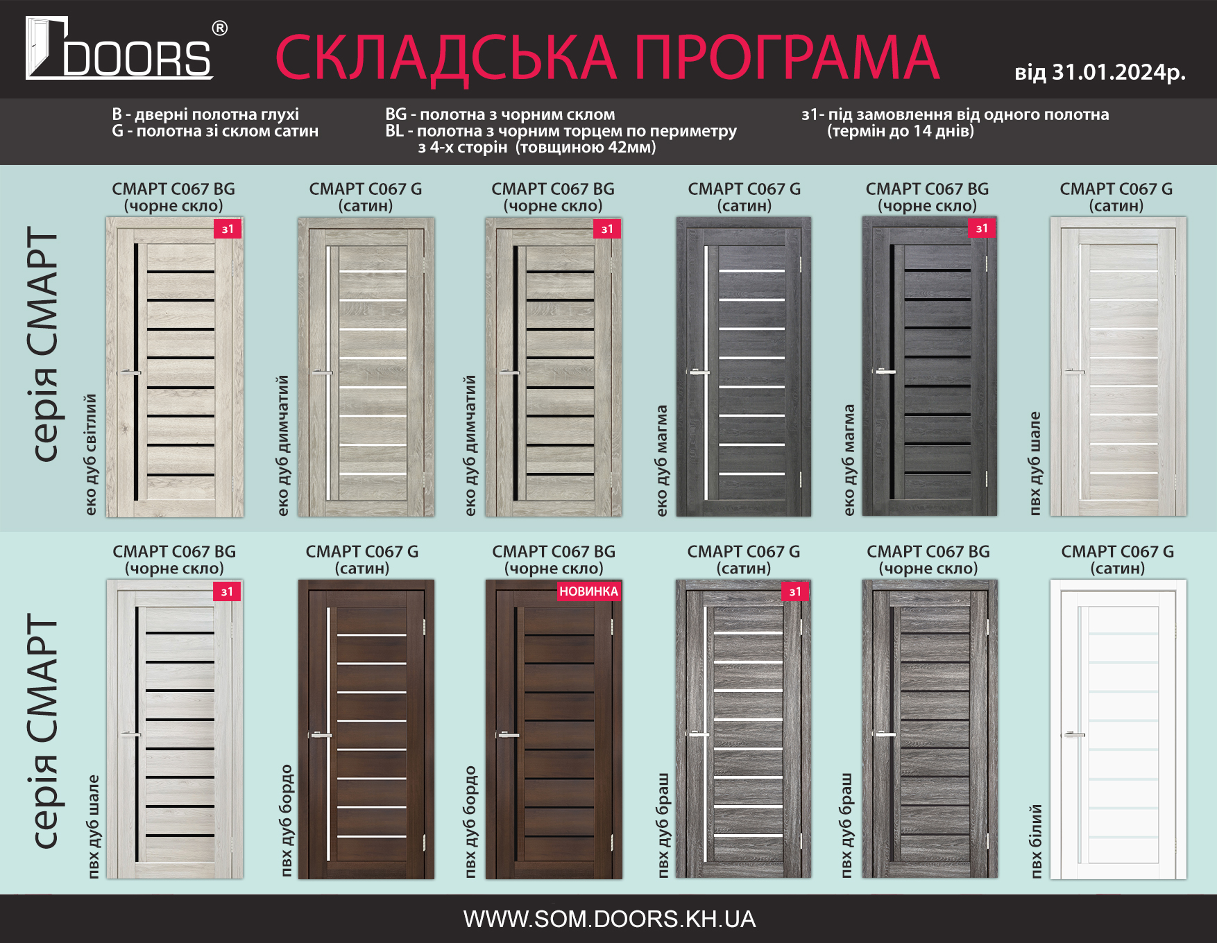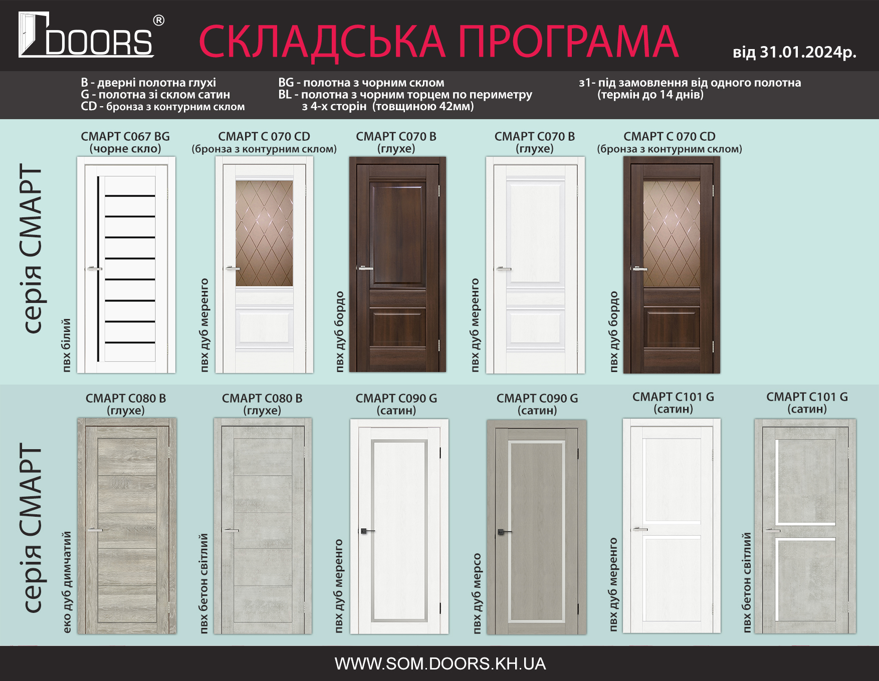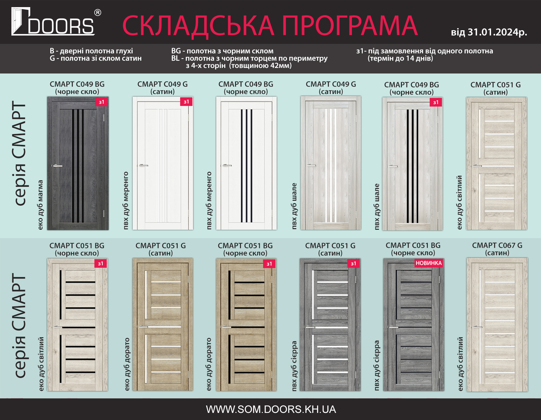 Моделі полотен колекції СМАРТ С070, С080, С090 та С101 в декорах складської програми 2024!