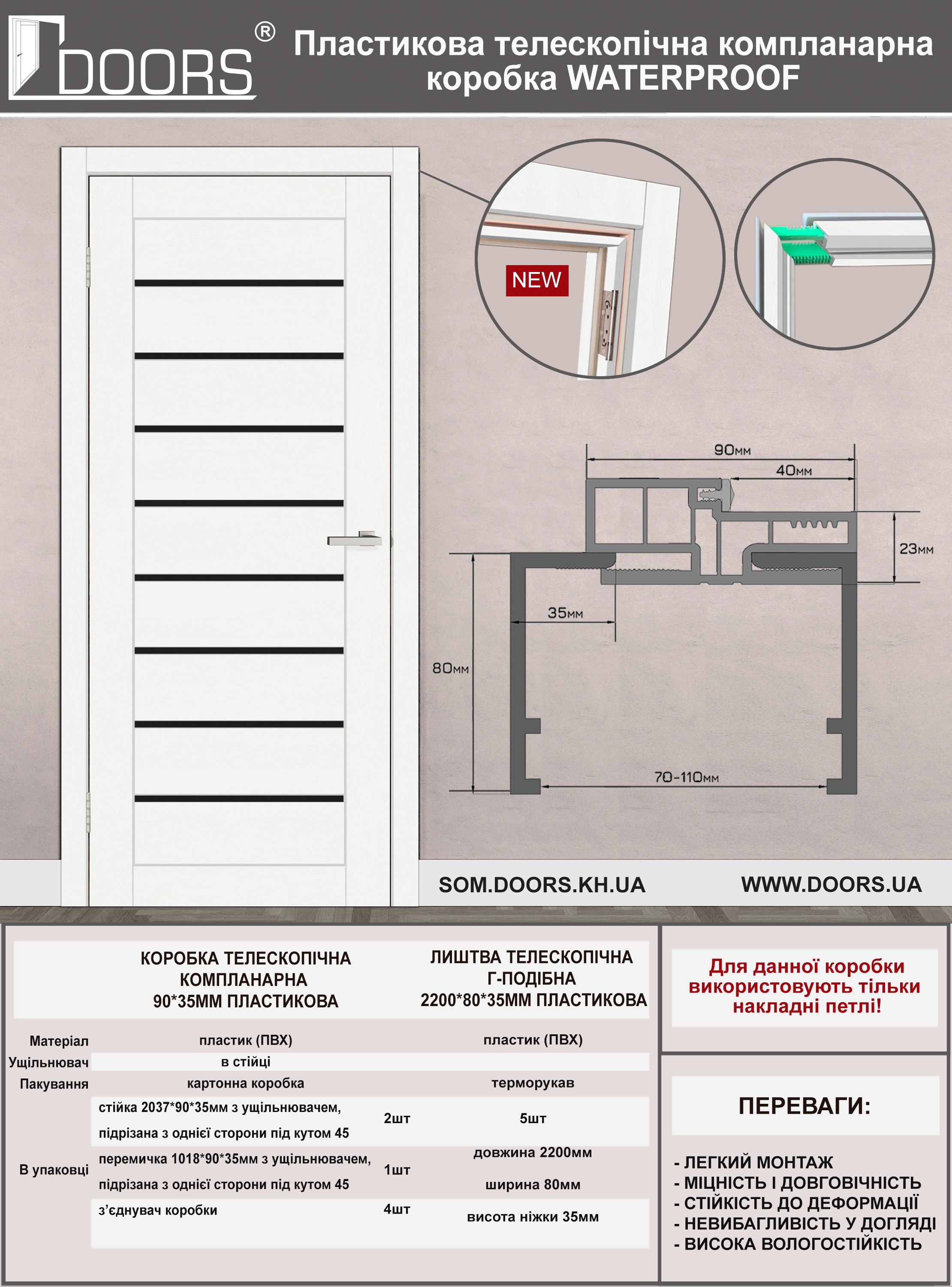 НОВИНКА! Погонаж WATERPROOF (пластик) коробка підрізана з однієї сторони під 45.