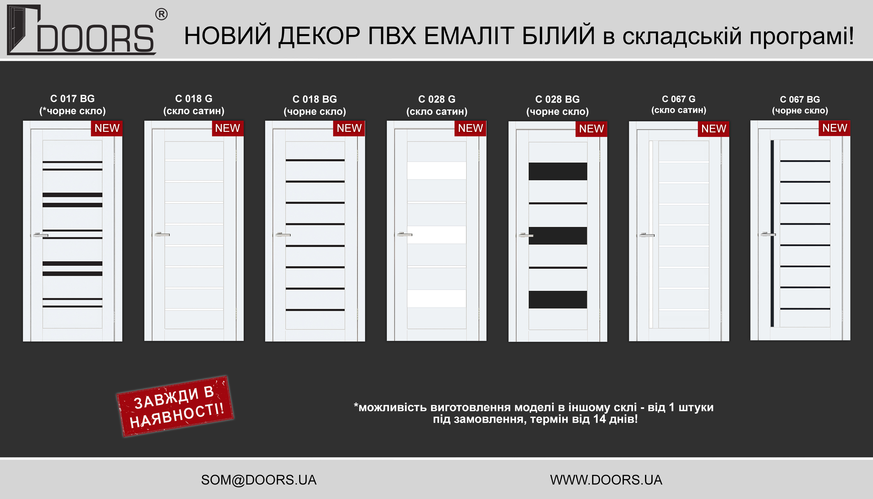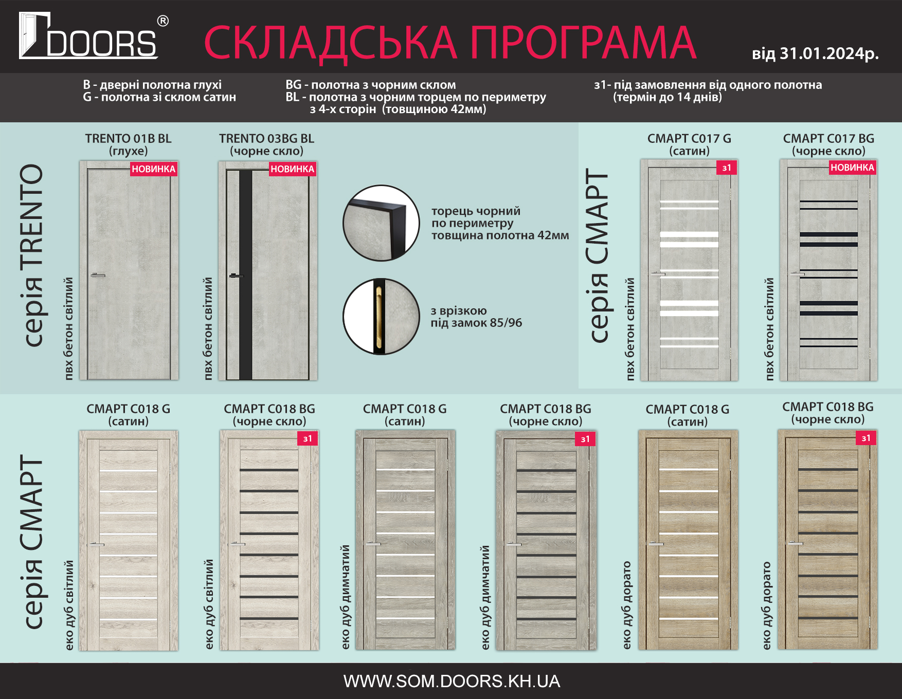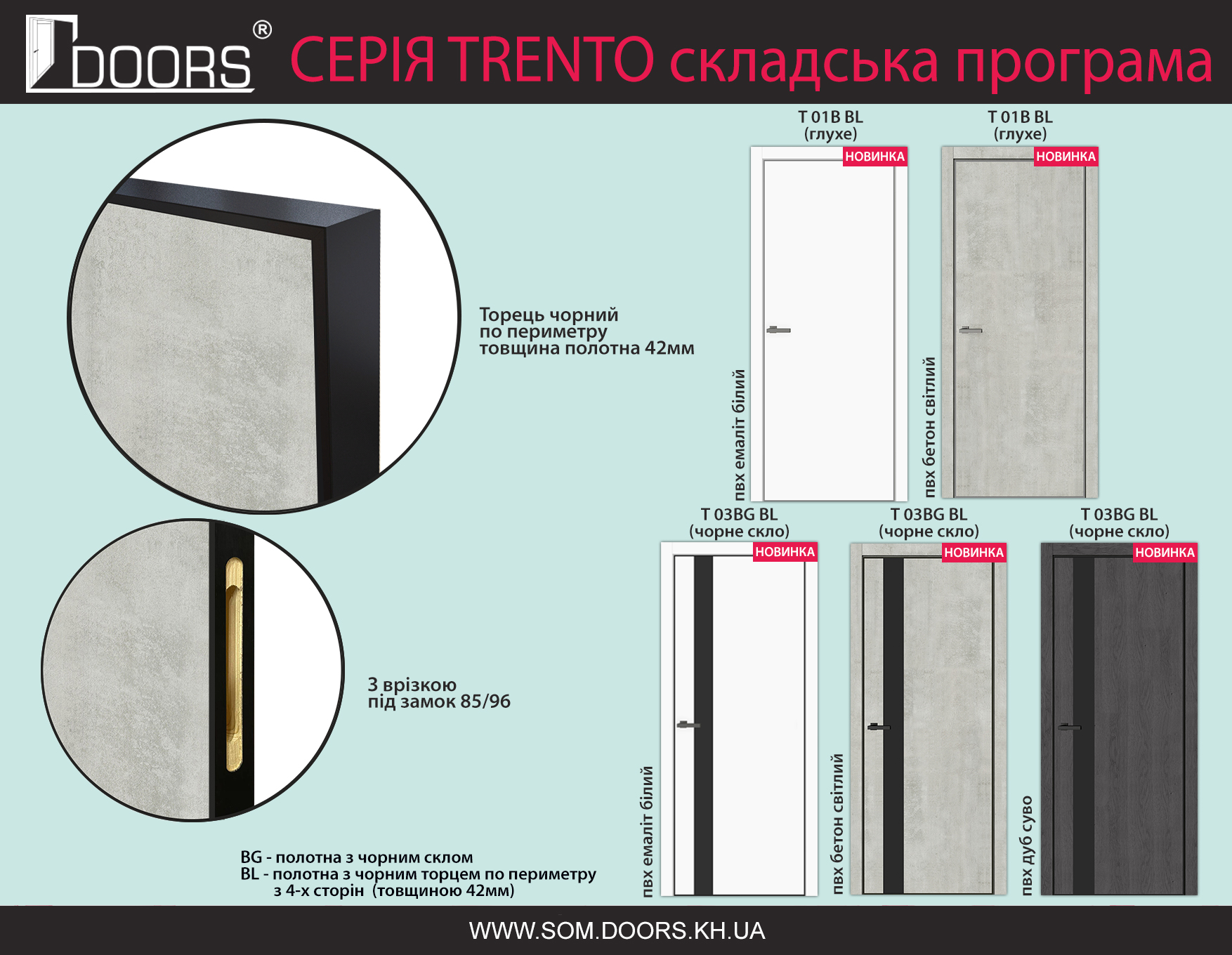 Презентація дверей від ТМ DOORS. серія TRENTO з накладною кромкою під алюміній