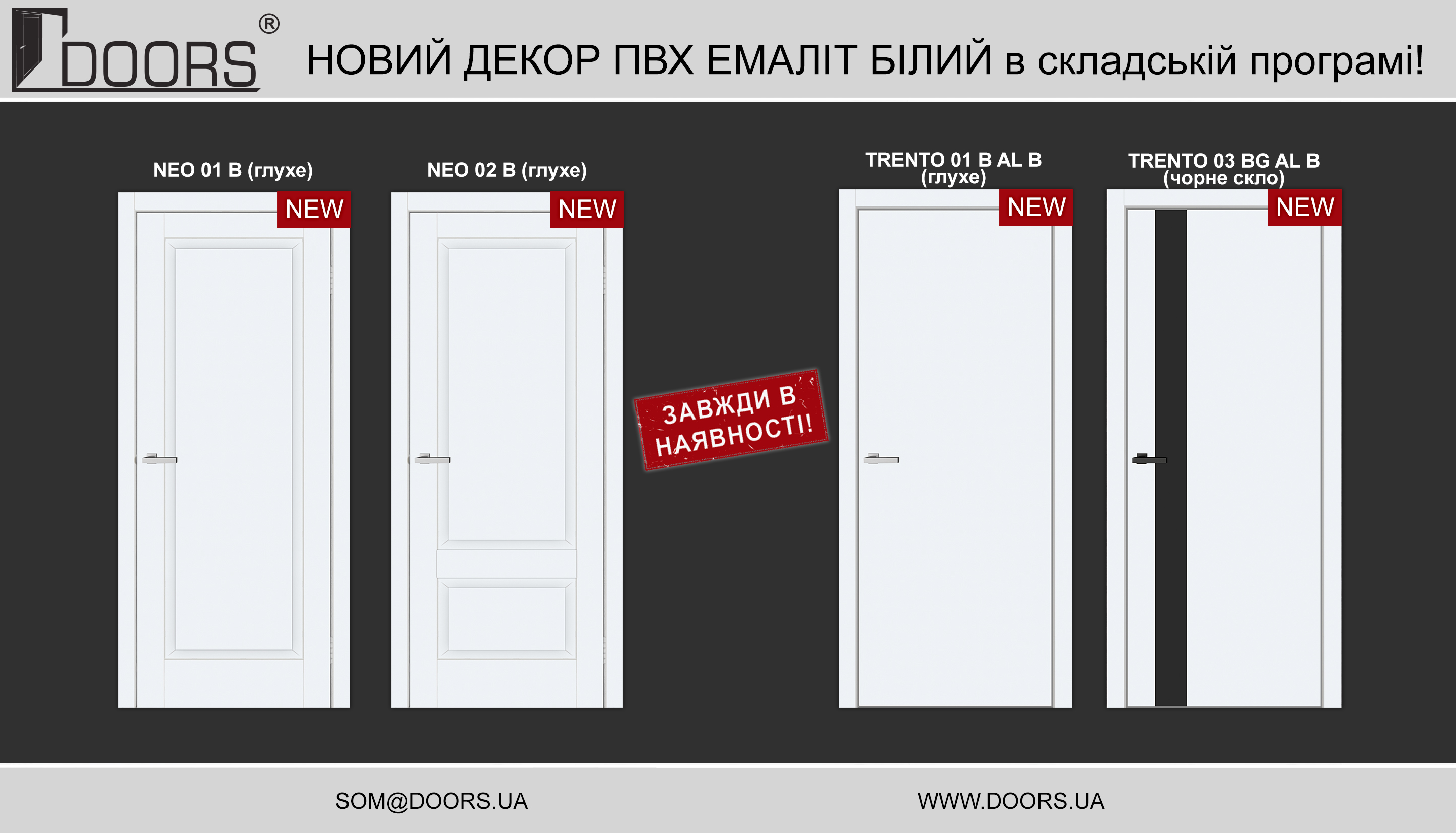 Новинка! ДЕКОР ПВХ ЕМАЛІТ БІЛИЙ в моделях серії NEO та серії TRENTO